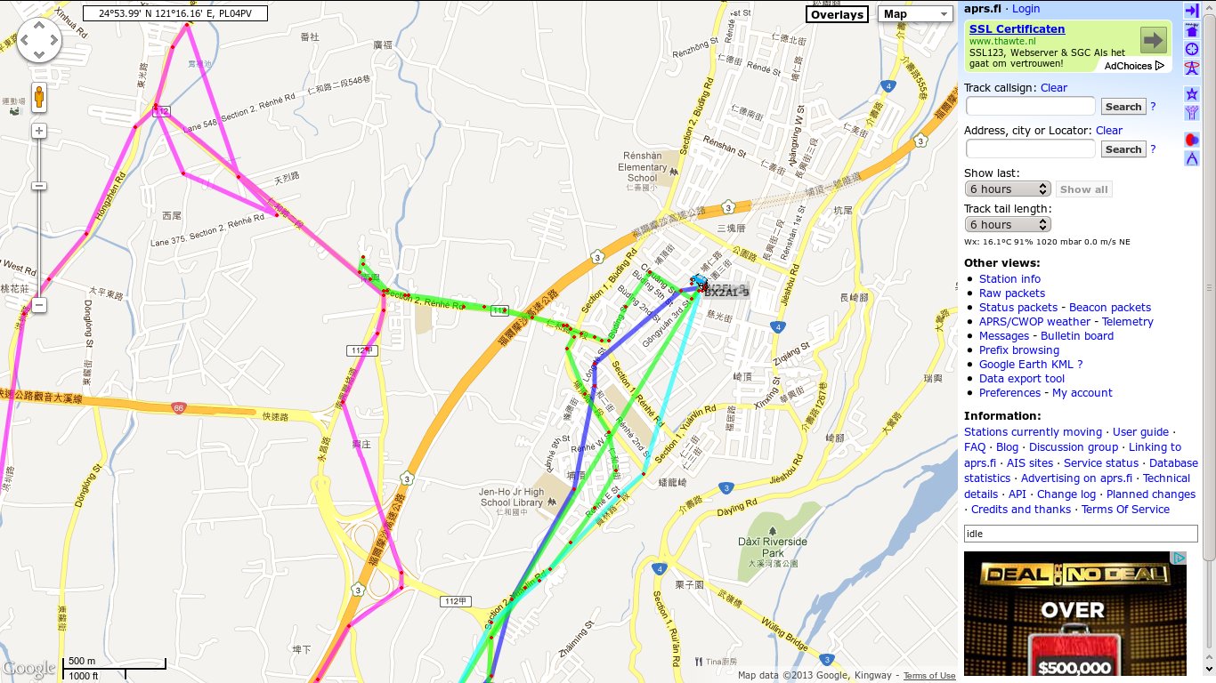 Because of the APRS talk lots of people had their trackers turned on, so for once we had a busy APRS scene in northern Taiwan.